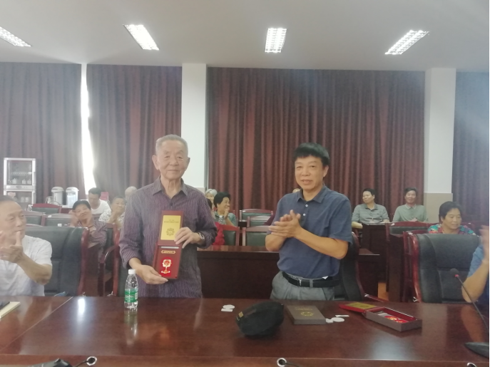 按照学校“不忘初心、牢记使命”主题教育的部署安排,9月25日下午,我校离退休教职工党支部召开支部学习活动,党支部书记林朝忠为我校三位离休干部王本儆、吉振中、苏宜英发放 “庆祝中华人民共和国成立70周年”纪念章,党支部副书记黄健同志作“铭记党史国史、坚定四个信念”主题报告。