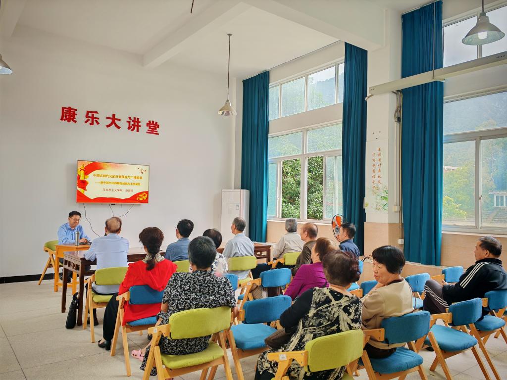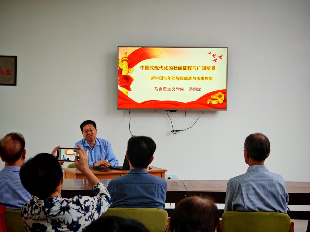 10月28日,校工会联合离退休教职工党支部邀请马克思主义学院游国斌教授作《中国式现代化的壮丽征程与广阔前景——新中国75年的辉煌成就与未来展望》专题讲座,离退休干部代表十余人聆听讲座。