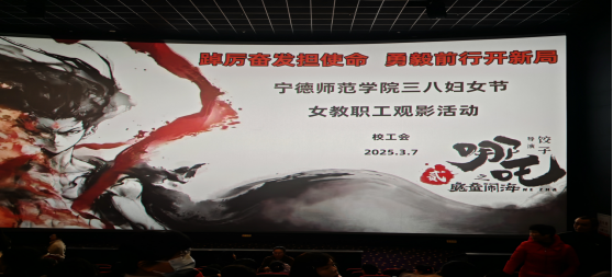 组织节日观影活动。于3月7日晚在横店影城3号巨幕厅观看《哪咤之魔童闹海》。女教职工们深受影片主人公哪吒“秉正义、不服输、有担当”的精神感染,纷纷表示要将这种精神运用到社会实践与工作实际之中。