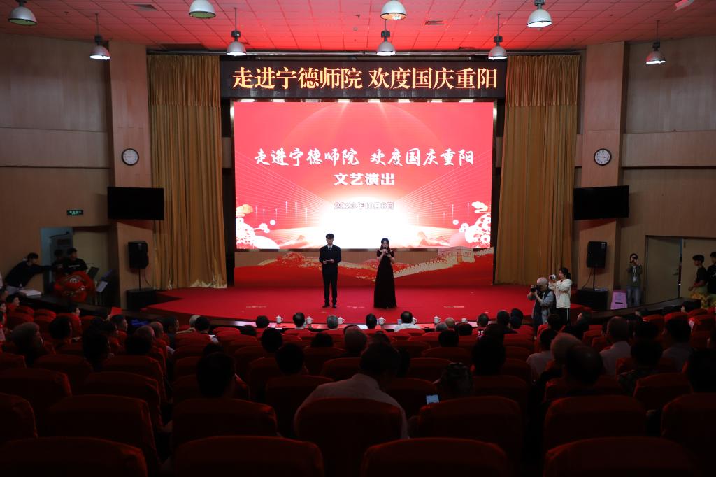 金秋十月爽,九九话重阳,日月两重归,相映地久长。为弘扬中华民族传统美德,营造“尊老、敬老、爱老、助老”的社会风尚,丰富广大退休教职工的文化生活,10月8日上午,宁德师范学院、宁德市退教师工作者协会、宁德市退教协市直蕉城分会联合组织开展的“走进宁德师院 欢度国庆重阳——2023宁德市直院校老教工感受改革发展新成果参观活动”在我校东侨校区举行。校党委副书记江潮炳、宁德市教育工会主席颜昭明、宁德市退教协会长陈居纯和市属蕉城院校(单位)260多位退休教职工欢聚一堂,共同庆祝国庆节和重阳节。